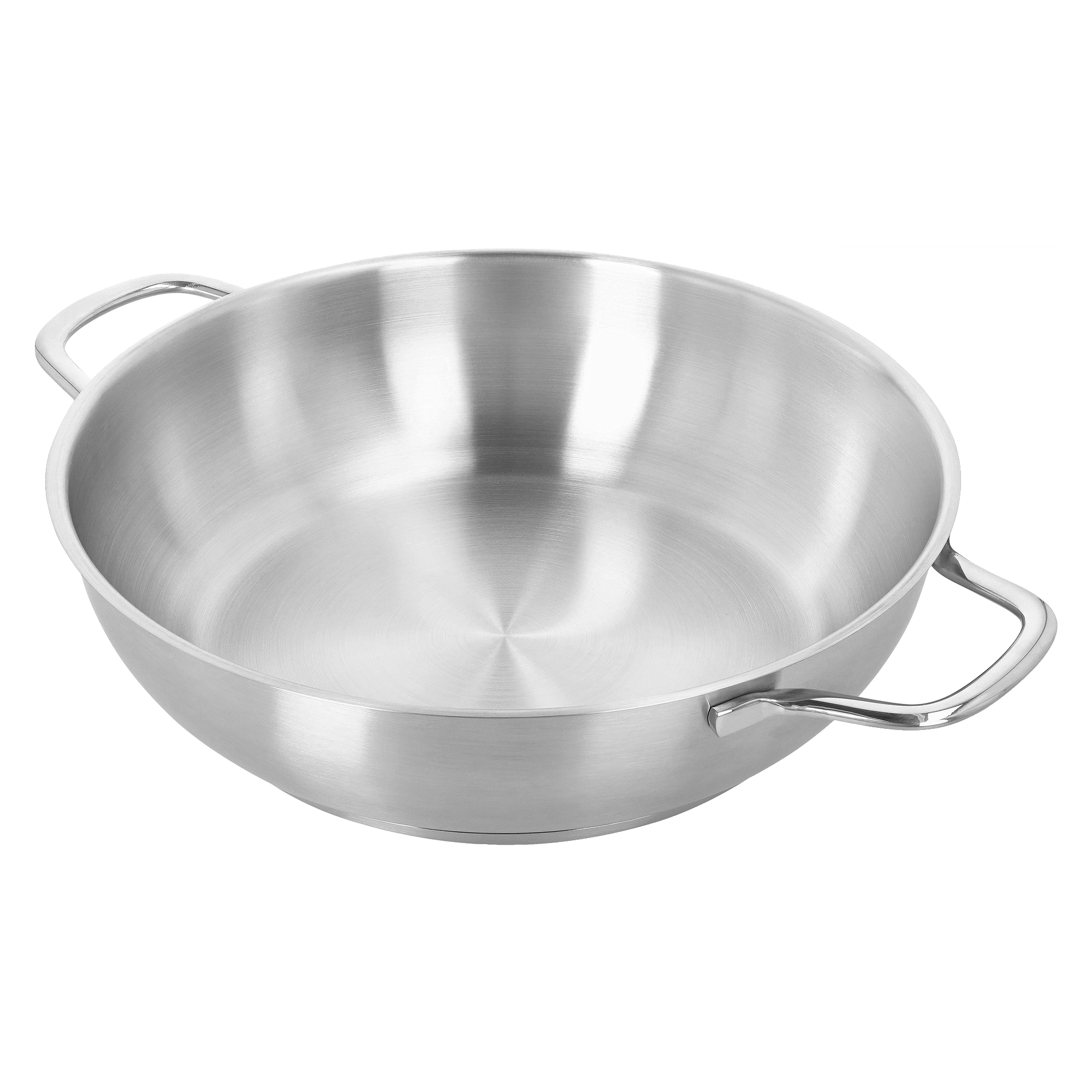 A serpenyő kiváló minőségű 18/10-es rozsdamentes acélból készült, és az alja egyenletesen osztja el a hőt. Minden főzőlapon alkalmas, beleértve az indukciós főzőlapokat is. Hegesztett rozsdamentes acél fogantyúkkal rendelkezik.