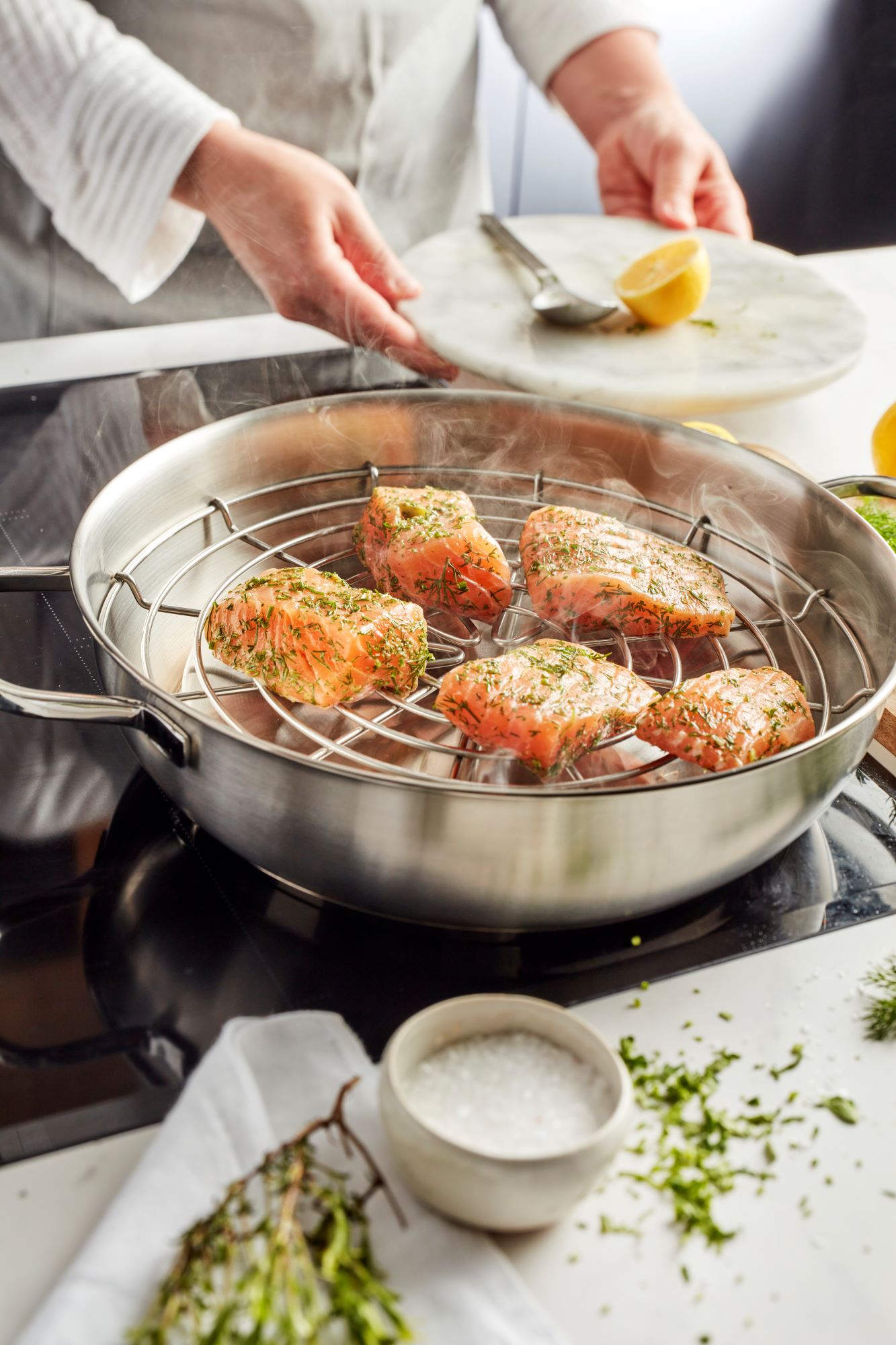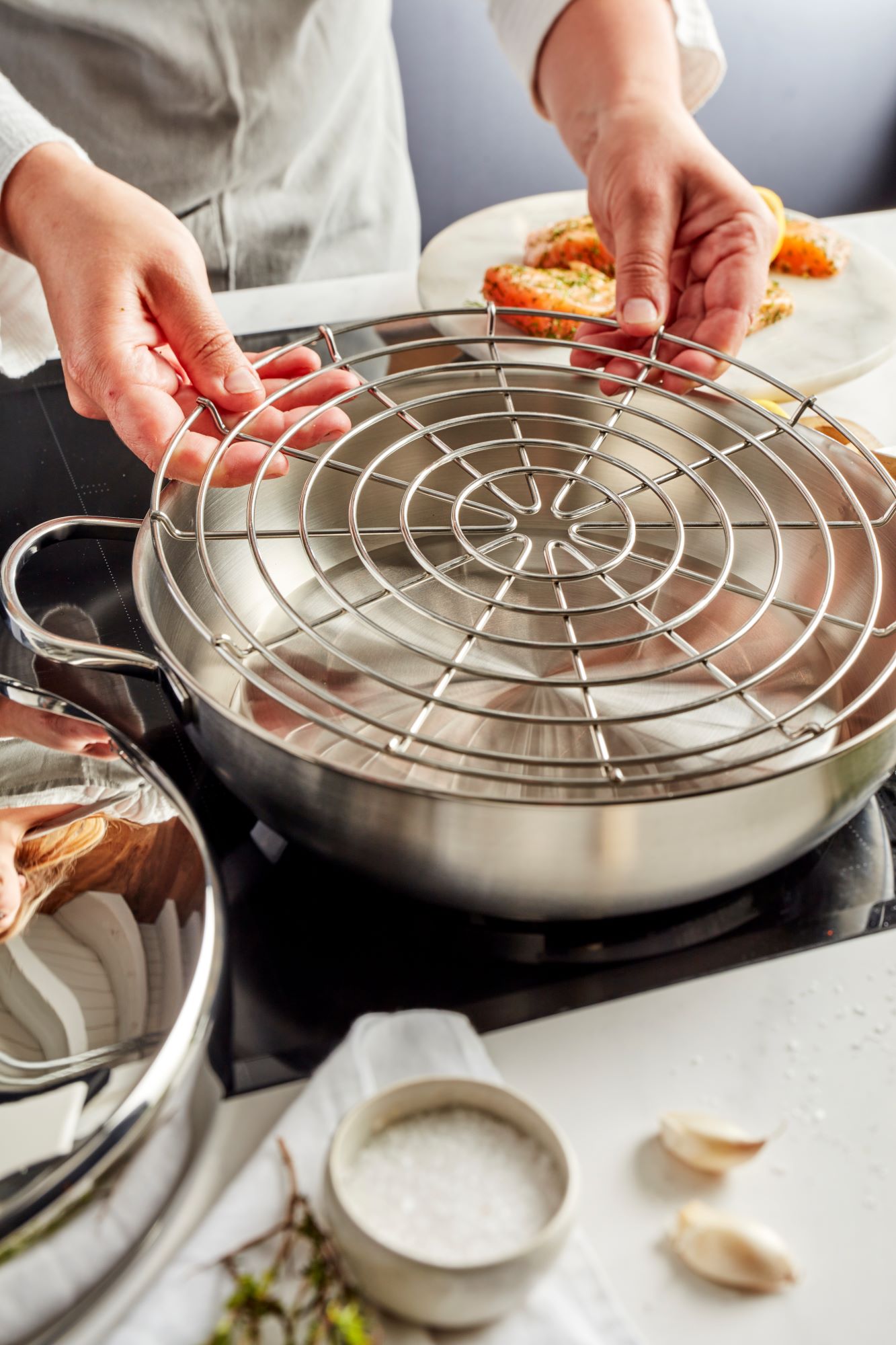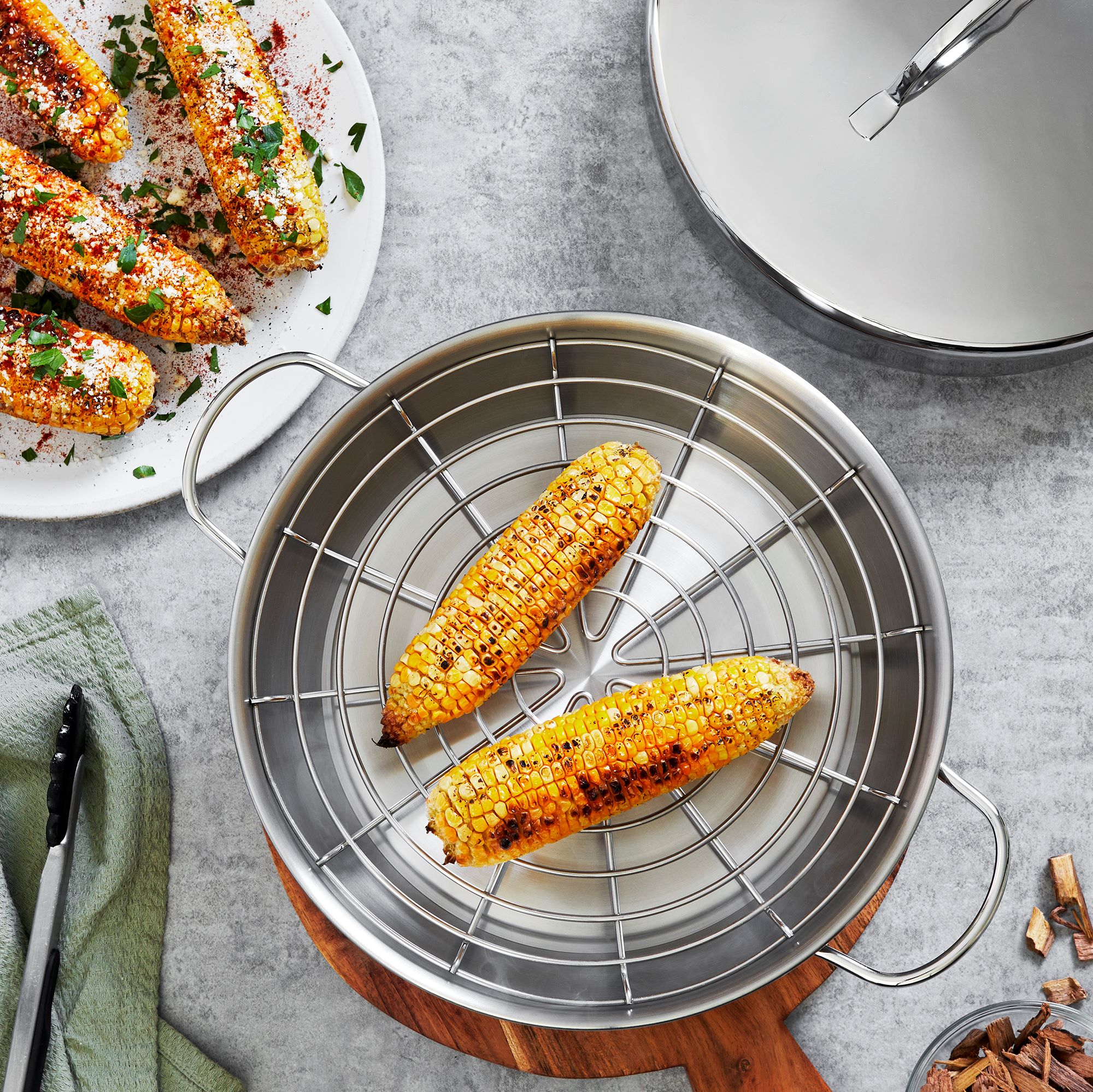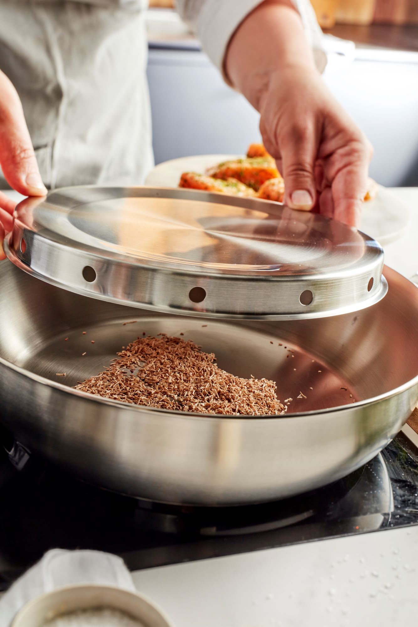 Az ételek füstölése, mint főzési technika, egyre népszerűbb, ezért tervezte meg a Demeyere ezt a füstölőkészletet , amely tartalmaz: egy 28 cm átmérőjű serpenyőt, egy füstölőkamrát, egy rácsot és egy magas fedőt.