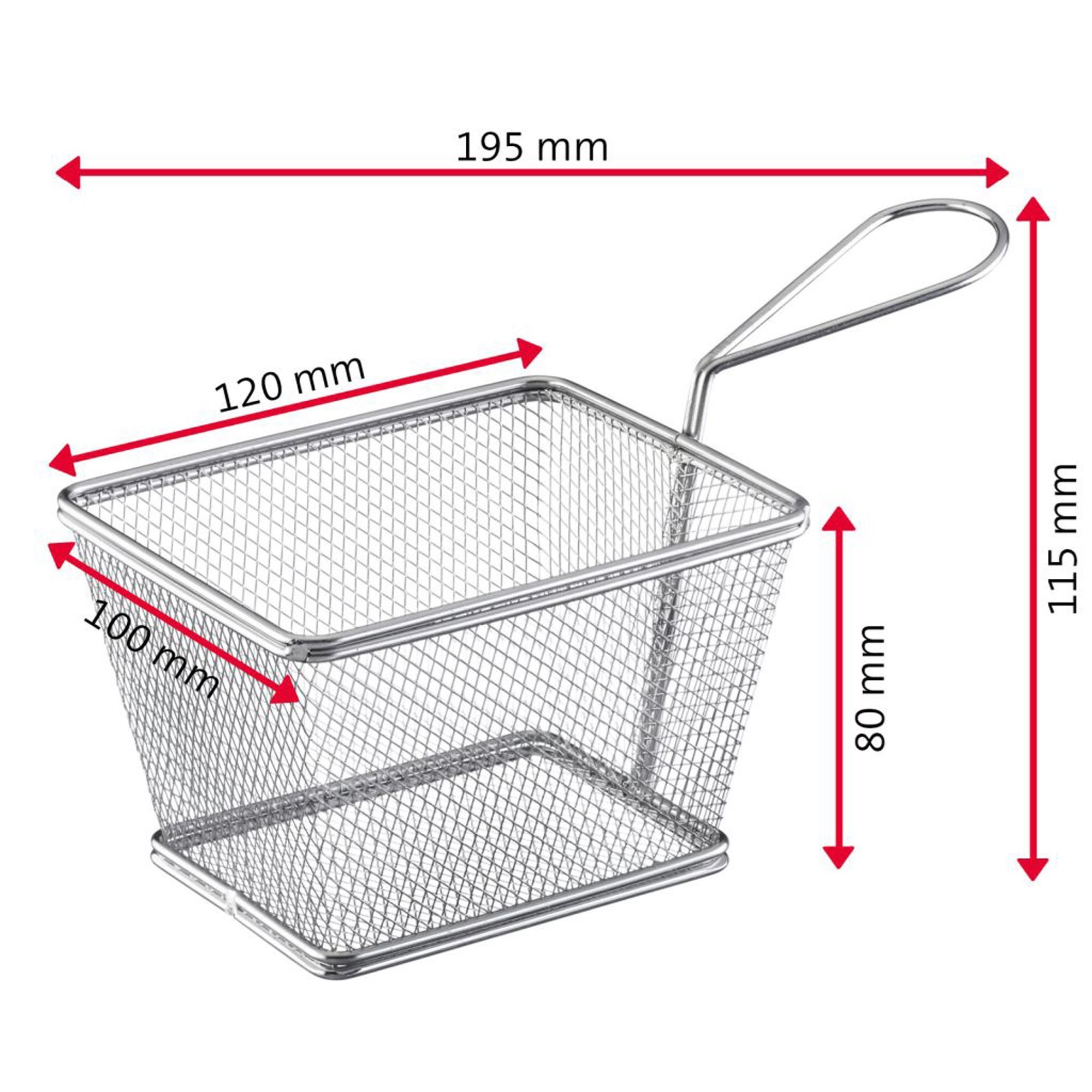 Ez a vonzó rozsdamentes acél tálalókosár ideális otthoni és professzionális konyhákba. Egyedi köretek, előételek és harapnivalók tetszetős bemutatására használható, dizájnjával minden étteremben, bárban vagy partiban vonzza.