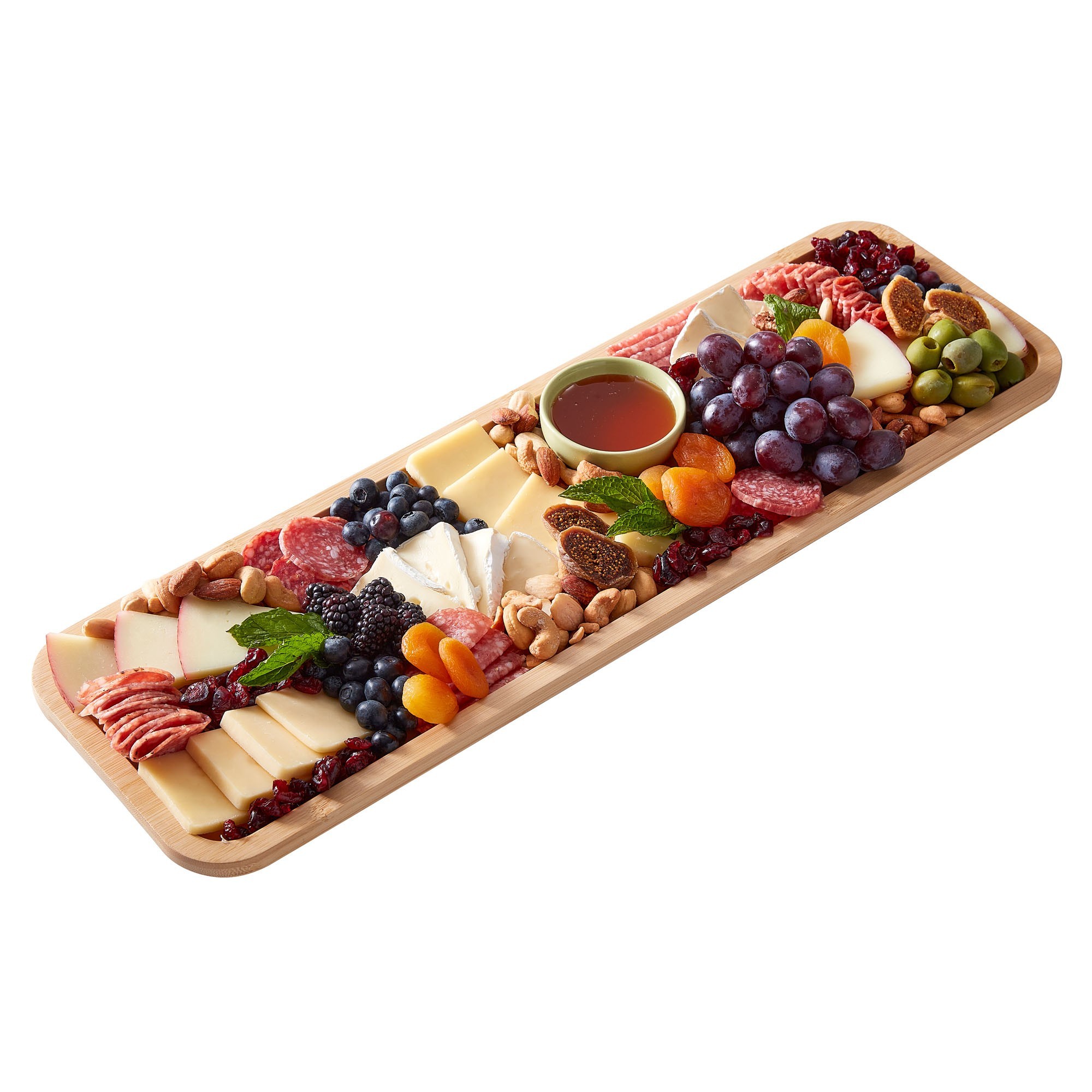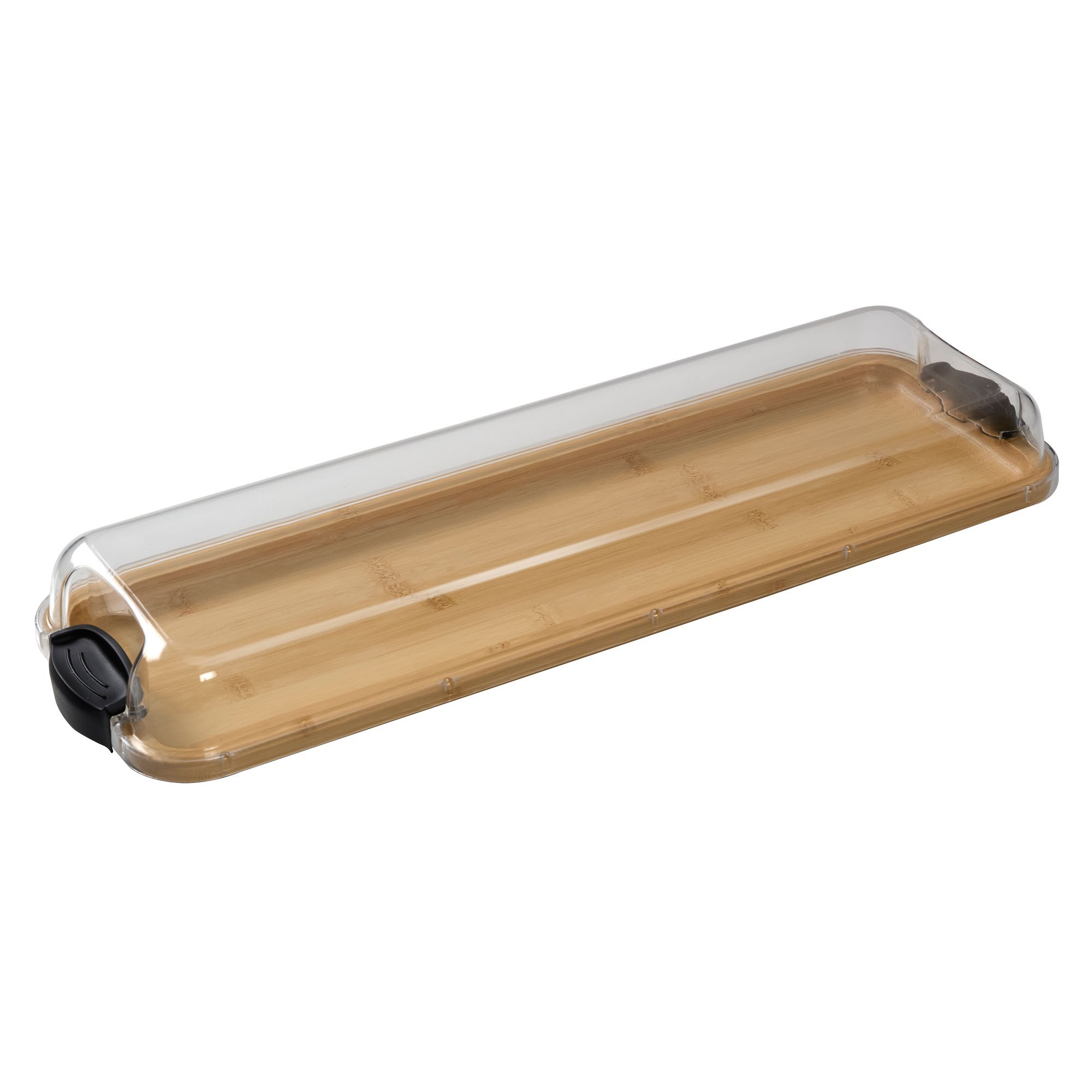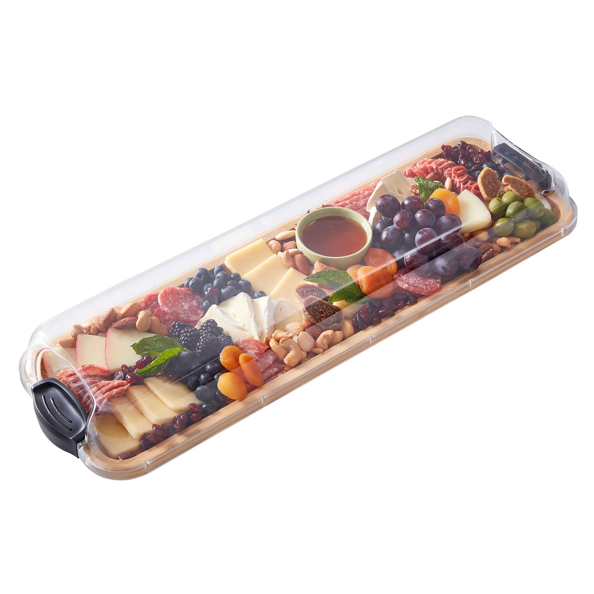 Előétel tálaló tálaló tál, Farberware™ Build-a-Board , bambuszból készült, méretei 17 x 56 cm, műanyag fedéllel.