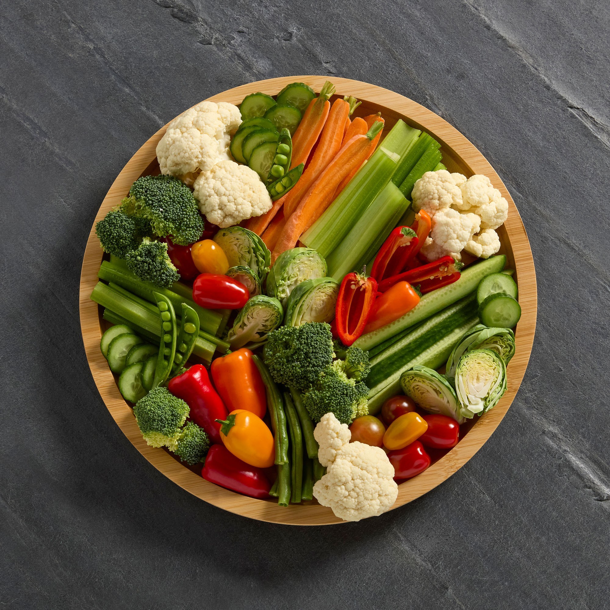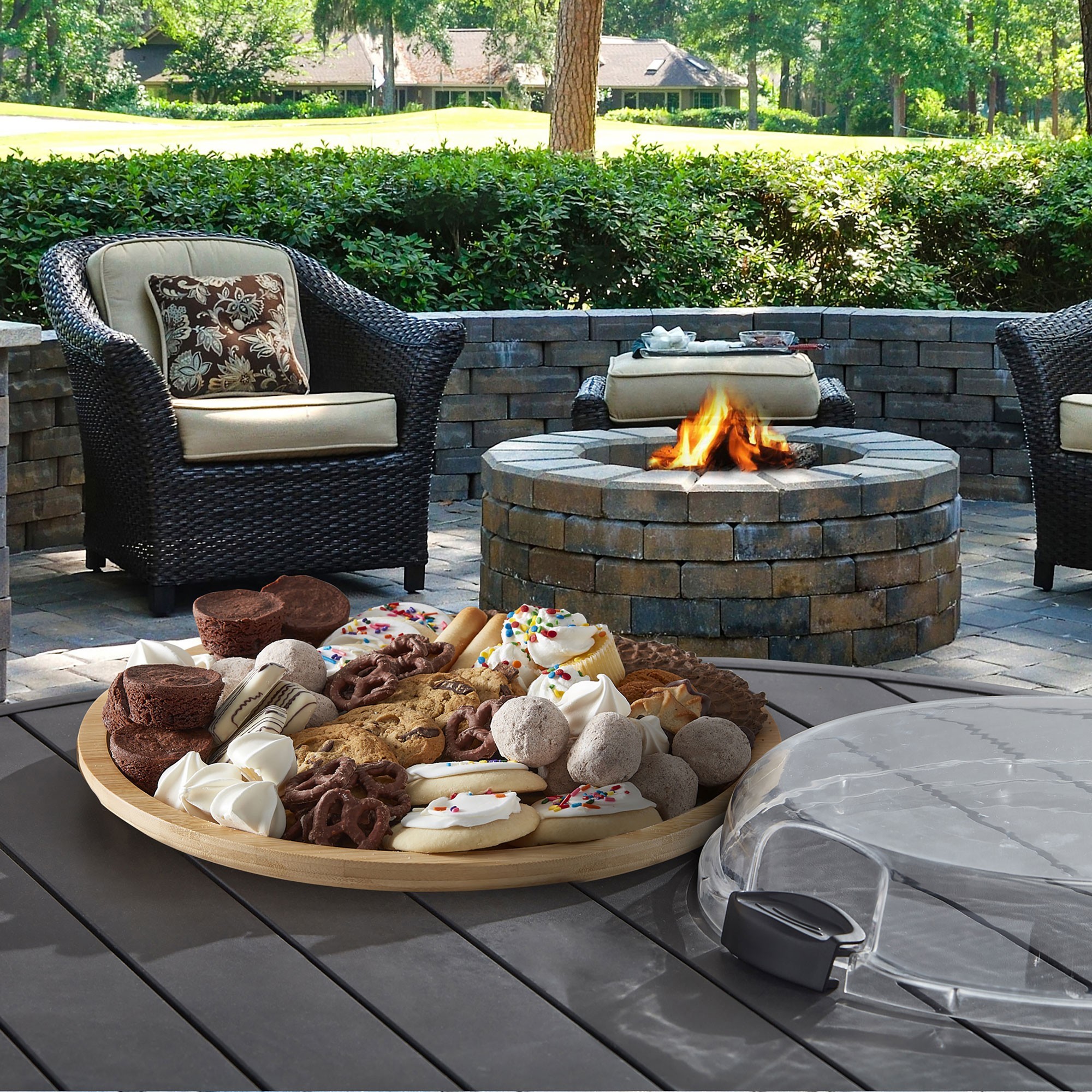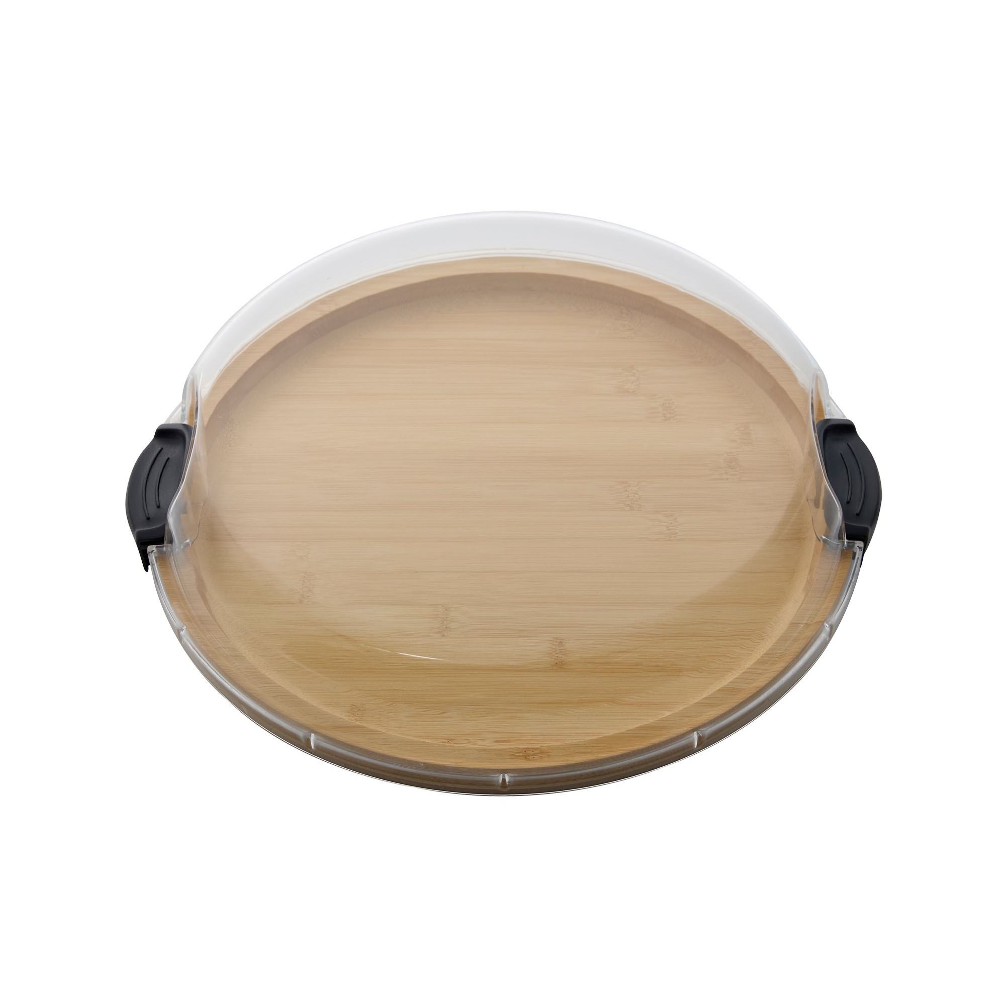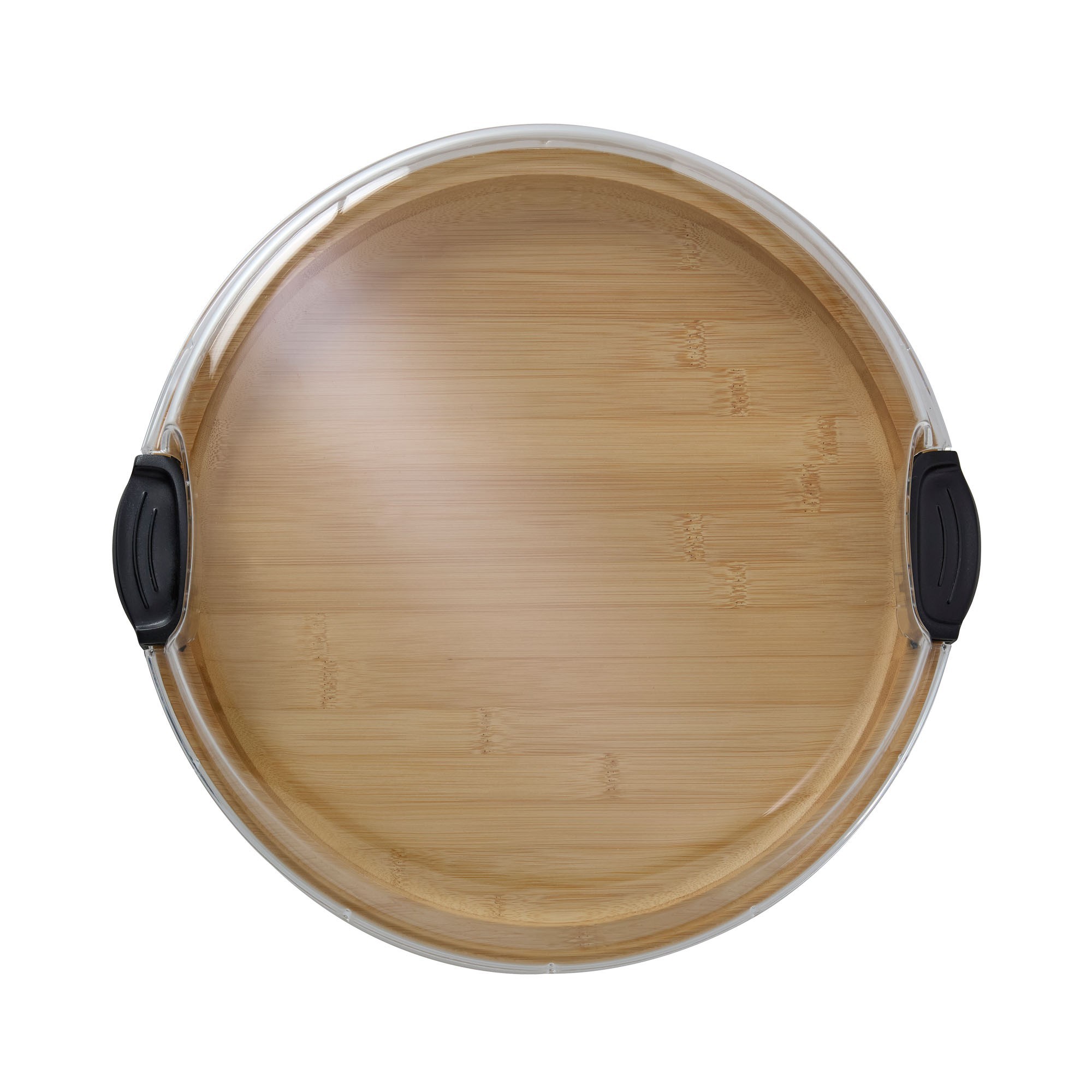 Előétel tálaló tálaló tál, Farberware™ Build-a-Board , bambuszból készült, 35,5 cm átmérőjű, műanyag fedéllel.