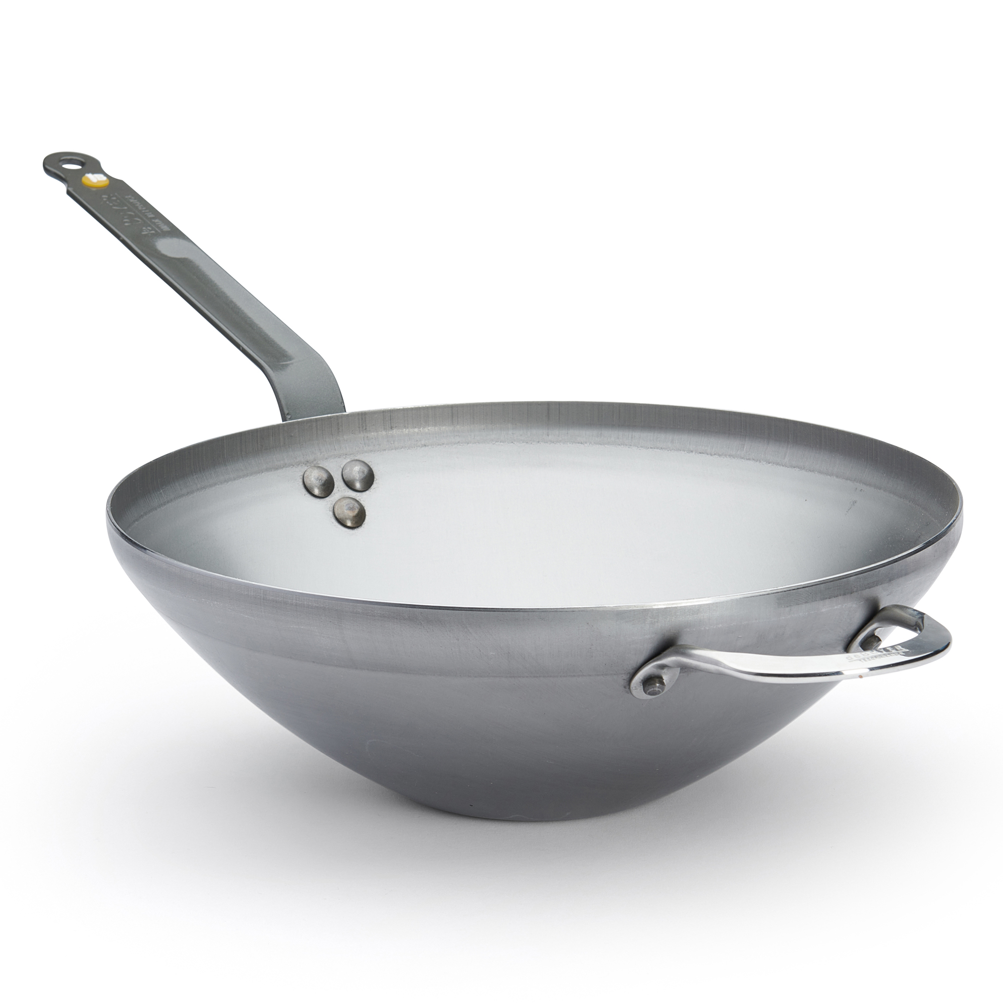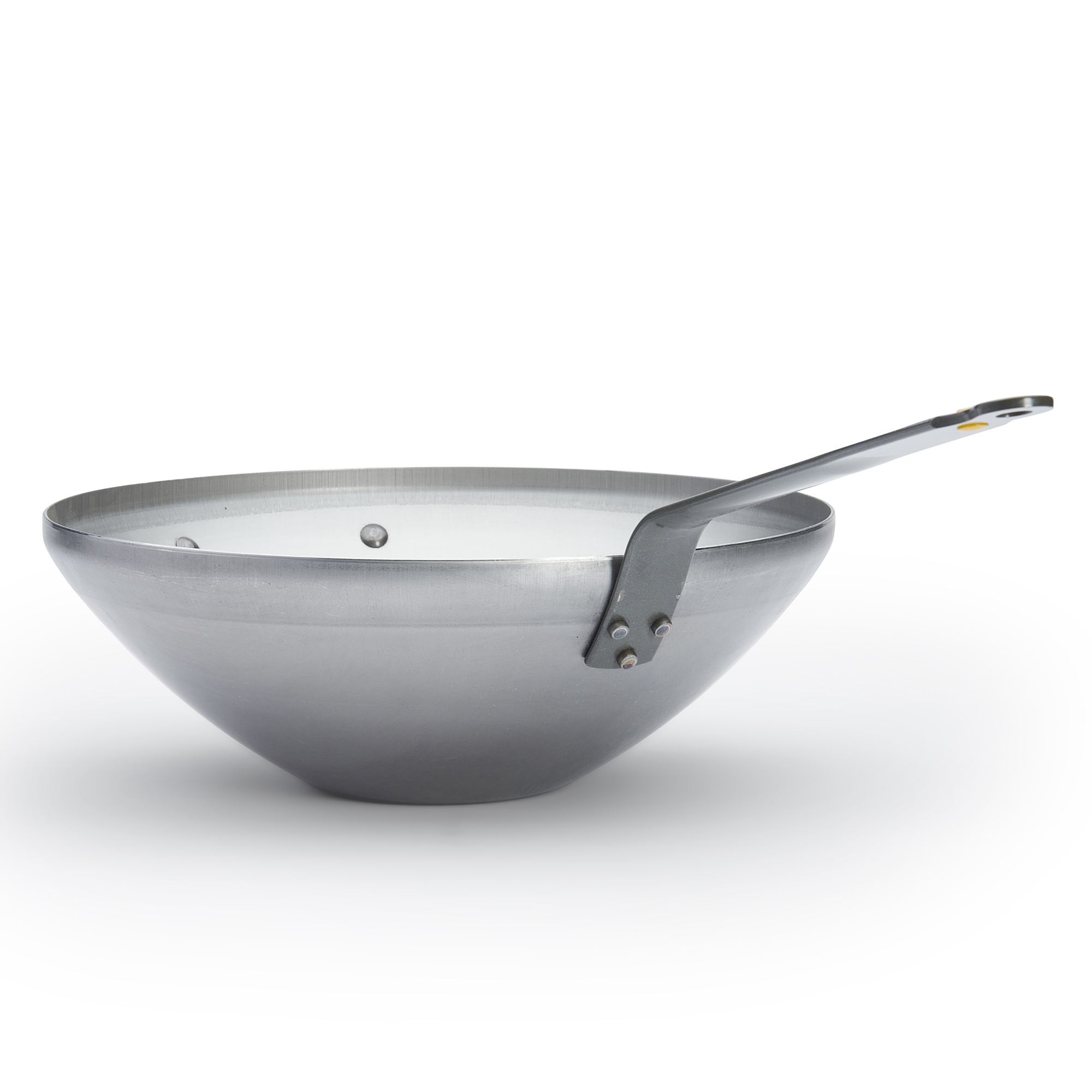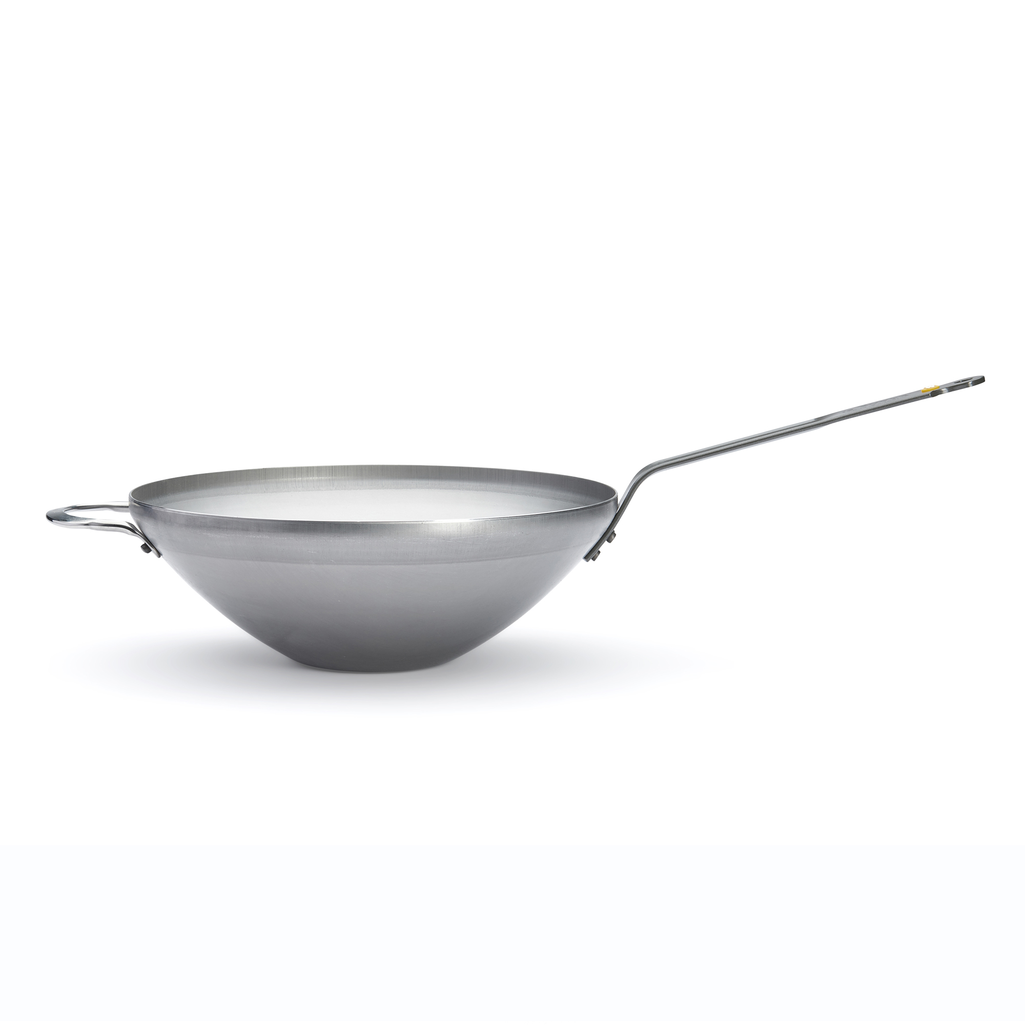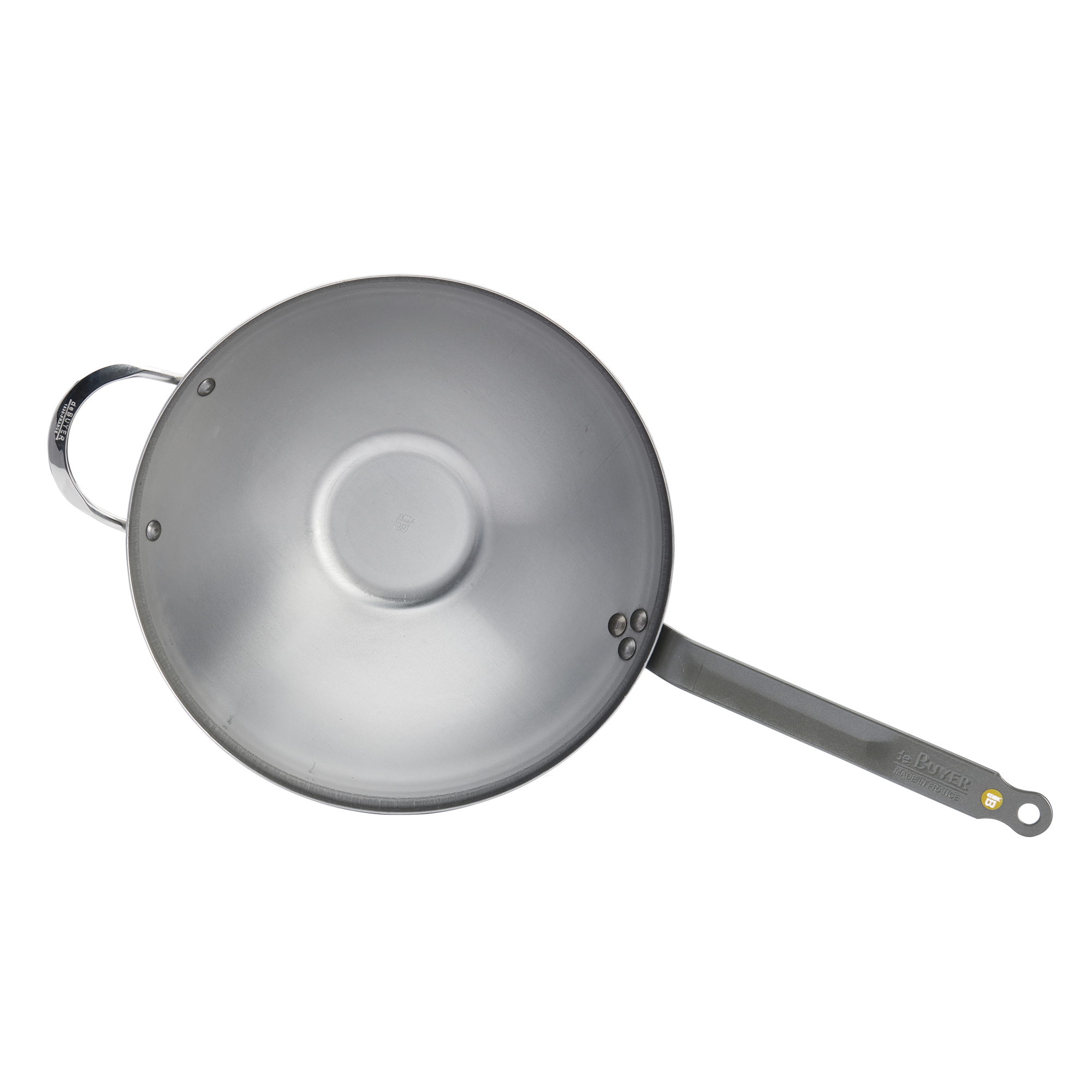 Professzionális wok serpenyő, de Buyer márka, átmérője 32 cm , magassága 9,7 cm , 2 mm vastag acélból készült, amely nem deformálódik.