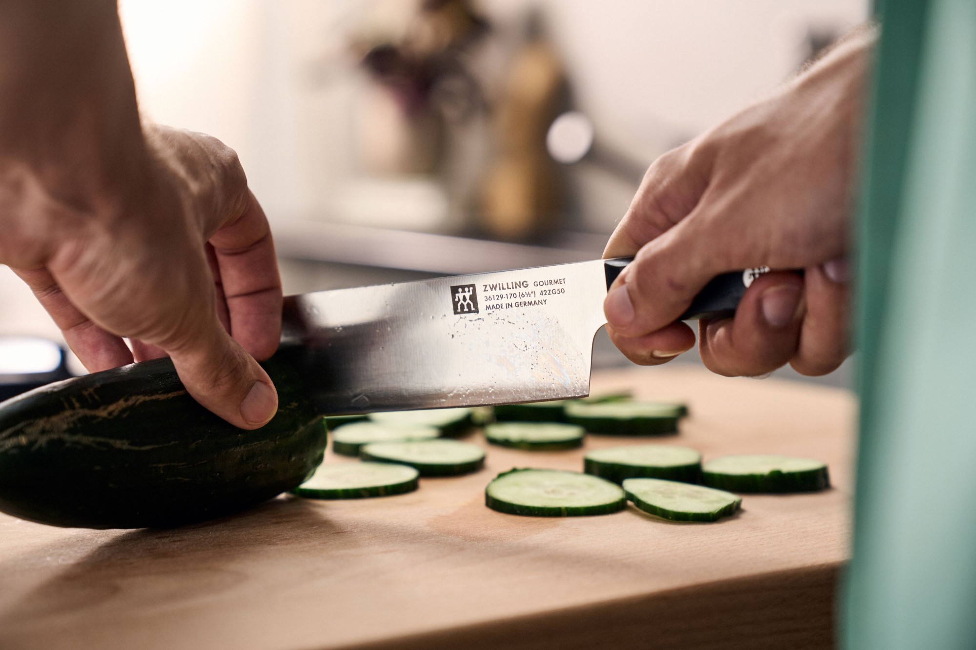 Nakiri kés, 17 cm hosszú pengével, tartós rozsdamentes acélból, a Zwilling gyártmánya.